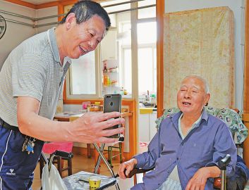 今年以來,山東省濟(jì)寧市創(chuàng)新領(lǐng)取養(yǎng)老金人員資格認(rèn)證方法,重點推行“手機(jī)APP人臉識別認(rèn)證系統(tǒng)”。圖為近日,該市89歲高齡的劉學(xué)禮老人在社區(qū)工作人員的協(xié)助下通過手機(jī)刷臉進(jìn)行認(rèn)證。(衣媛攝)