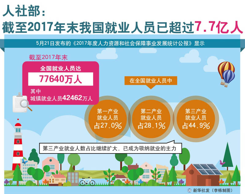 圖表:人社部:截至2017年末我國就業(yè)人員已超過7.7億人