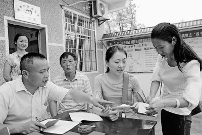 江西省吉水縣每年3月至5月開展養(yǎng)老保險(xiǎn)待遇領(lǐng)取資格認(rèn)證工作,安排居民就近在村(居)委會(huì)集中認(rèn)證。圖為近日,該縣醪橋鎮(zhèn)茶灘村的村民(右)為家人辦理認(rèn)證手續(xù)。(周建軍攝)