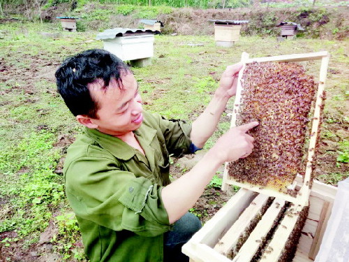 ?江喜查看蜜蜂健康狀況。