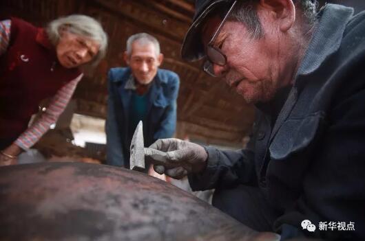 2011年11月13日,補鍋匠蔣德濟在修補一只舊鐵鍋。(王滋創(chuàng) 攝)