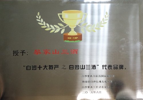 ?2018年“黎家山蘭酒”榮獲“白沙十大特產(chǎn)之白沙山蘭酒代表品牌