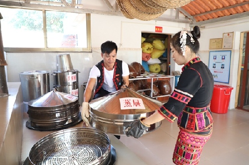 ?正與妻子一同釀制山蘭糯米酒的朱曉保