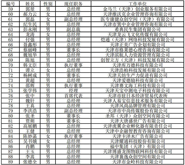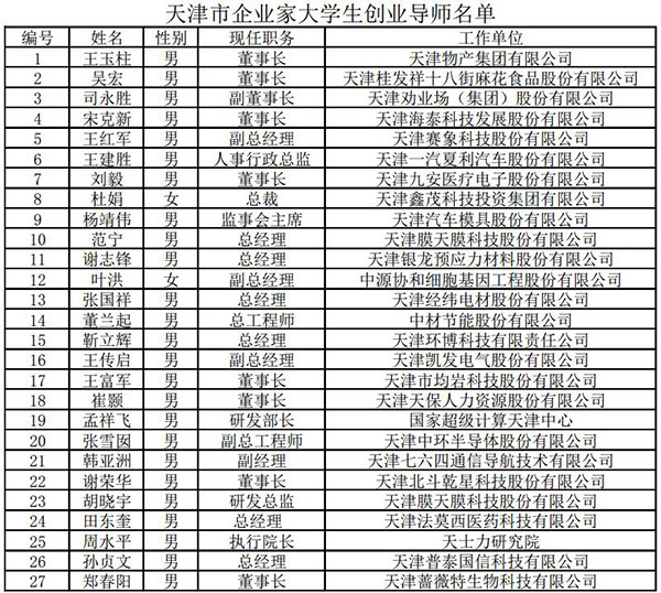 附:天津市企業(yè)家大學(xué)生創(chuàng)業(yè)導(dǎo)師名單