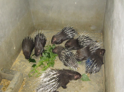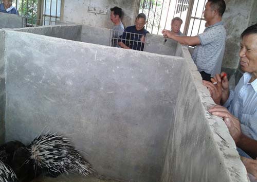 梁春庭告訴筆者,他從小一直喜歡動物。高中畢業(yè)后,他被當?shù)厝馐乘a(chǎn)站選中,成了國有單位的一名職工,負責廠里肉食品機器的維護,這一工作就是六年,平時他工作負責,積極進取,也善于學習,在肉食水產(chǎn)站他學會了屠宰技術(shù),肉食分割技術(shù)。后來水產(chǎn)站解體,當時開始私有化,開放了個體經(jīng)營,梁春庭也就開始做起了肉攤生意,他人勤快,除了做好肉攤生意,他在老家還搞起了養(yǎng)殖業(yè),先后養(yǎng)過豬、蛇、水魚、青蛙,但一直沒能把規(guī)模做大。94年他的肉攤市場,發(fā)現(xiàn)有人專收購豪豬,豪豬的價格比咱們普通豬肉價格要高很多,一想老家的生態(tài)環(huán)境也非常適合豪豬的養(yǎng)殖,很有市場前景。這就是梁春庭早接觸豪豬養(yǎng)殖的初衷。
