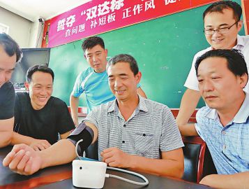 為讓基層員工能隨時掌握自己的血壓情況,提前預防相關疾病,安徽淮北礦業(yè)渦北礦工會為基層各單位統(tǒng)一配發(fā)了智能血壓計,有效避免了血壓不正常的職工上崗,減少工傷事故的發(fā)生。圖為近日,該礦綜采二區(qū)職工在班前會前用智能血壓計測量血壓。(陳彪 攝)