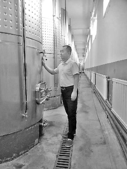 8月31日,富強(qiáng)在檢測(cè)葡萄酒儲(chǔ)存設(shè)備。(左姍 攝)