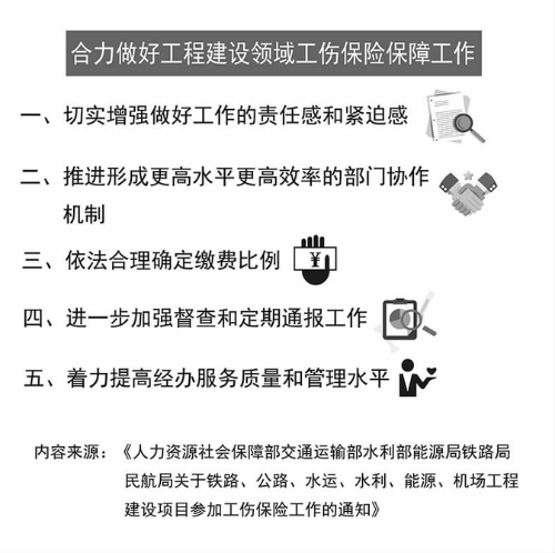 近年來,人社部在大力推進(jìn)以工程建設(shè)項(xiàng)目為重點(diǎn)的工傷保險(xiǎn)參保擴(kuò)面工作卓有成效。 今年1月, 人社部、 交通運(yùn)輸部、 水利部、 能源局、鐵路局、 民航局聯(lián)合印發(fā) 《關(guān)于鐵路、公路、水運(yùn)、水利、能源、機(jī)場工程建設(shè)項(xiàng)目參加工傷保險(xiǎn)工作的通知》。 《通知》 指出, 三年來, 在各部門的協(xié)力推動(dòng)以及各地共同努力下,住建領(lǐng)域新開工工程建設(shè)項(xiàng)目參保率已達(dá)到99.73%, 累計(jì)4000多萬人次建筑業(yè)農(nóng)民工納入工傷保險(xiǎn)保障范圍。 同時(shí), 對鐵路、 公路、 水運(yùn)、水利、能源、機(jī)場工程建設(shè)項(xiàng)目中流動(dòng)就業(yè)的農(nóng)民工納入工傷保險(xiǎn)保障工作提出具體部署。