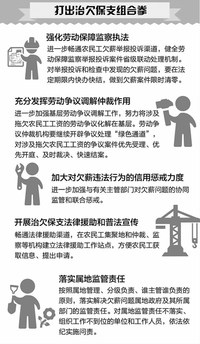 再健全的制度規(guī)定,倘若不能在現(xiàn)實(shí)中落地生根,那也不能發(fā)揮作用。解決農(nóng)民工欠薪問題,不是一朝一夕的事情,因此需要各級(jí)政府、各有關(guān)部門堅(jiān)持久久為功、長(zhǎng)抓不懈。(劉俊良)(圖表內(nèi)容來源:人社部官網(wǎng) 漫畫圖表小米/繪 圖表內(nèi)容來源:人社部《治欠保支三年行動(dòng)計(jì)劃(2017—2019)》)