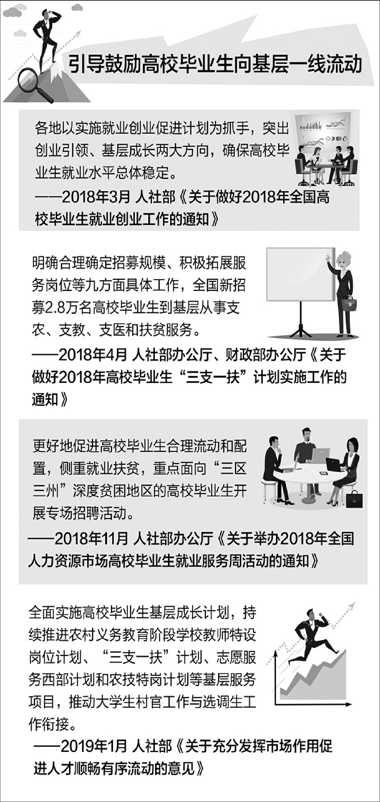 近年來,我國提出了一系列鼓勵(lì)大學(xué)生到基層就業(yè)的政策措施。日前,人社部印發(fā)《關(guān)于充分發(fā)揮市場作用促進(jìn)人才順暢有序流動(dòng)的意見》,進(jìn)一步引導(dǎo)鼓勵(lì)人才向艱苦邊遠(yuǎn)地區(qū)和基層一線流動(dòng)。目前我國大學(xué)生基層就業(yè)情況如何?如何鼓勵(lì)引導(dǎo)大學(xué)生到基層一線就業(yè)?針對這些問題,記者采訪了相關(guān)專家。