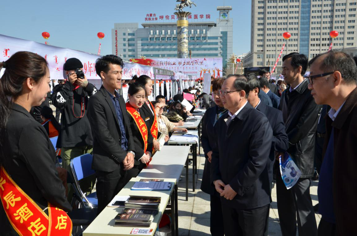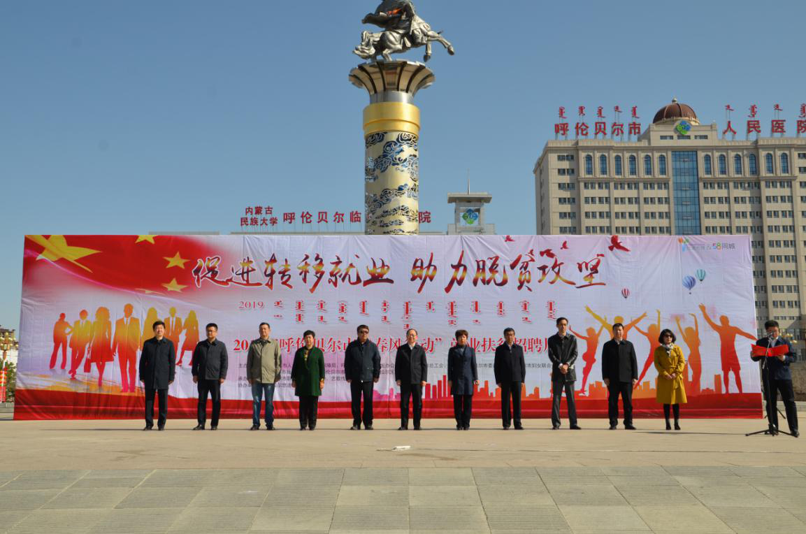 為全面貫徹落實(shí)黨的十九大精神和中央經(jīng)濟(jì)工作會(huì)議精神,助推鄉(xiāng)村振興戰(zhàn)略,打贏脫貧攻堅(jiān)戰(zhàn),進(jìn)一步促進(jìn)農(nóng)村牧區(qū)勞動(dòng)力特別是建檔立卡農(nóng)村牧區(qū)貧困勞動(dòng)力轉(zhuǎn)移就業(yè),滿足企業(yè)和各類單位用人需求,由呼倫貝爾市人力資源和社會(huì)保障局、扶貧辦、總工會(huì)、婦聯(lián)、團(tuán)委、殘聯(lián)聯(lián)合海拉爾區(qū)人民政府共同主辦,呼倫貝爾市就業(yè)服務(wù)局承辦的2019年呼倫貝爾市“春風(fēng)行動(dòng)”就業(yè)扶貧招聘周于4月27日在海拉爾區(qū)成吉思汗廣場(chǎng)正式啟動(dòng)同時(shí)通過(guò)線上968966辦事直通車網(wǎng)上平臺(tái)、聯(lián)合企業(yè)58同城網(wǎng)上同步進(jìn)行。呼倫貝爾市委常委、常務(wù)副市長(zhǎng)陳智,市人大常委會(huì)副主任孫慶杰、市政協(xié)副主席戴強(qiáng)、市政府副秘書(shū)長(zhǎng)鄢樹(shù)嶺、市人力資源和社會(huì)保障局局長(zhǎng)羅吉舫、市殘聯(lián)理事長(zhǎng)樊秀敏,市人力資源和社會(huì)保障局副局長(zhǎng)張健、市扶貧辦副主任蓋福斌、市總工會(huì)副主席崔英杰、市團(tuán)委副書(shū)記張磊、市婦聯(lián)副主席梁玉紅、海拉爾區(qū)委常委、常務(wù)副區(qū)長(zhǎng)于再國(guó)、市就業(yè)服務(wù)局局長(zhǎng)馬燦平參加了啟動(dòng)儀式。