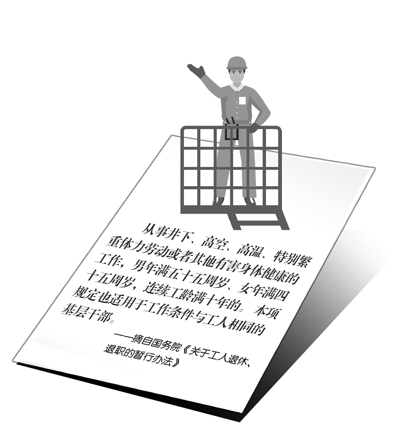 制定于上世紀(jì)中后期的特殊工種提前退休政策,規(guī)定從事井下、高空、高溫、特別繁重體力勞動(dòng)或其他有害身體健康的工作,男職工年滿55周歲、女職工年滿45周歲,連續(xù)工齡滿10年即可退休。但隨著經(jīng)濟(jì)社會(huì)的發(fā)展,后續(xù)出現(xiàn)的空調(diào)維修、清洗等高空作業(yè)工種并未被列入特殊工種名單。