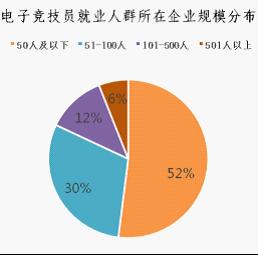 對(duì)電子競(jìng)技員就業(yè)人群所在企業(yè)規(guī)模進(jìn)行調(diào)研,通過(guò)數(shù)據(jù)整理可以看出,50人及以下占比52%,51-100人占比30%,101-500人占比12%,501人及以上占比6%。電子競(jìng)技員所在企業(yè)以小、微型公司為主,這與當(dāng)前就業(yè)企業(yè)以電子競(jìng)技俱樂(lè)部為主有很大的關(guān)系。