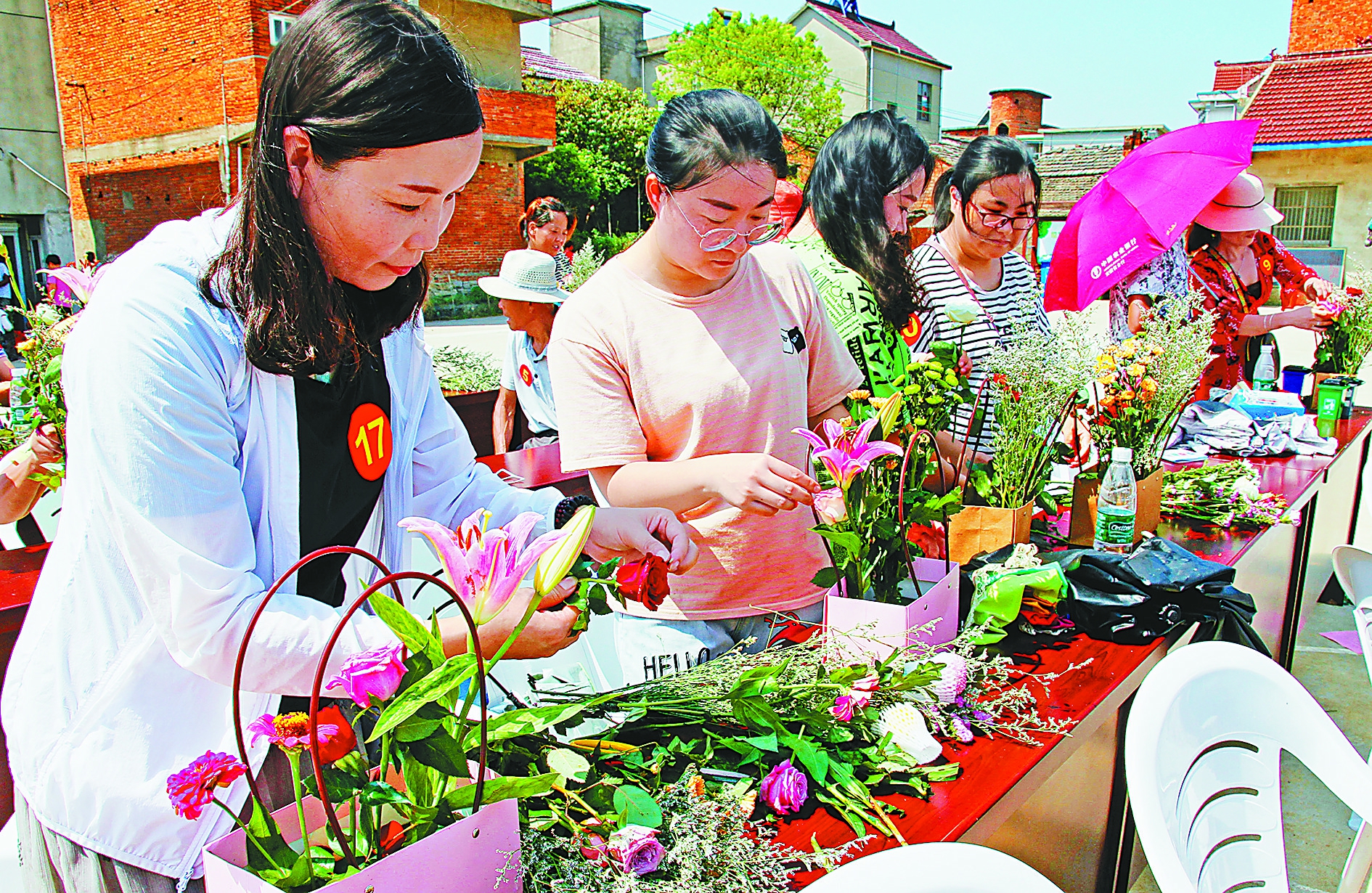 近年來,安徽省蕪湖市三山區(qū)人社局、婦聯(lián)等部門積極舉辦各類農(nóng)村實用技術(shù)培訓(xùn)班,提高農(nóng)村婦女的技能水平,為她們就業(yè)創(chuàng)業(yè)打好基礎(chǔ)。圖為近日,三山區(qū)峨橋鎮(zhèn)豐裕村婦女在參加插花才藝技能比賽。(程依寶 攝)