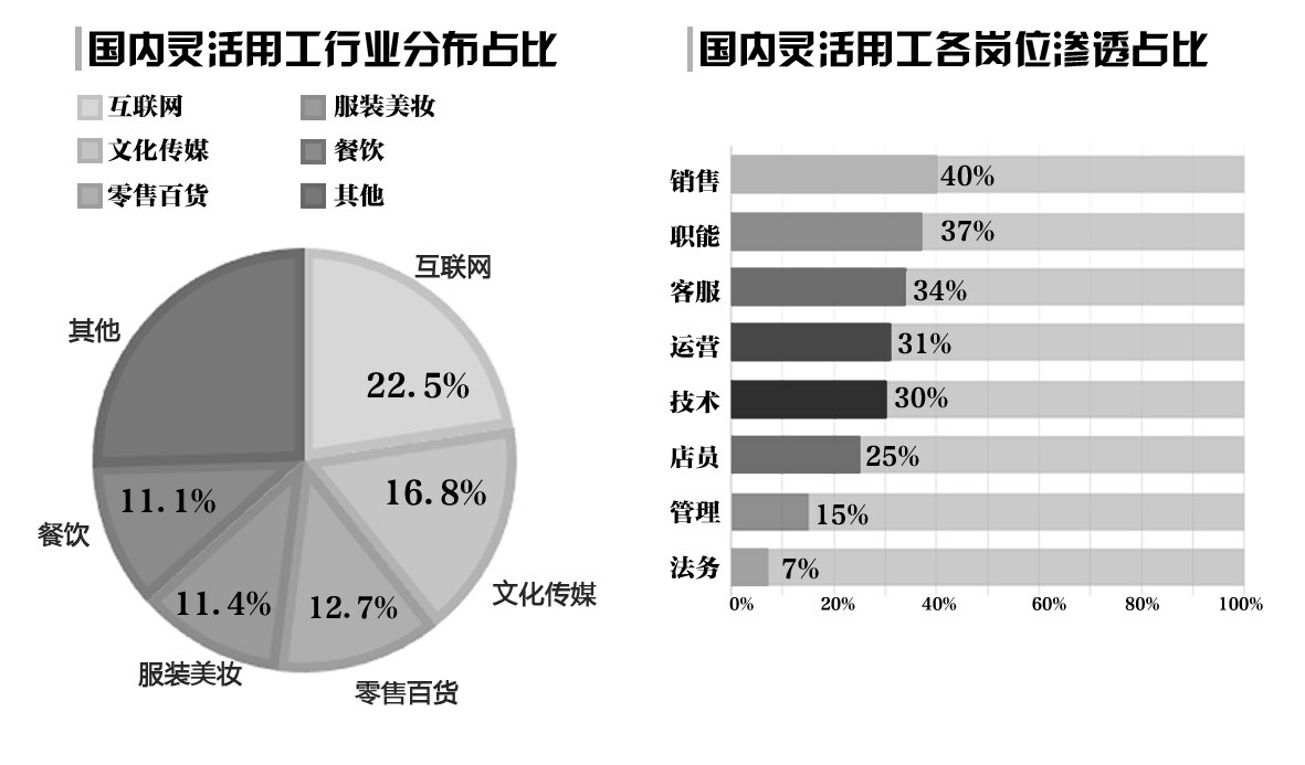 傳統(tǒng)經(jīng)濟下的靈活用工主要包括兼職、勞務派遣、業(yè)務外包等用工方式,有的派遣工與業(yè)務外包員工有固定底薪,勞動者與企業(yè)的關(guān)系并不十分“靈活”。平臺經(jīng)濟下的靈活用工打破了傳統(tǒng)的用工方式,勞動者采取在線接單、按單計酬的方式獲得勞動報酬,就業(yè)形式更加自由靈活。