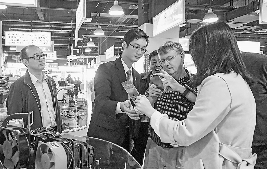 龔曉龍(左二)向外國學(xué)者介紹構(gòu)建和諧勞動關(guān)系創(chuàng)新舉措。(湖里區(qū)仲裁院供圖)