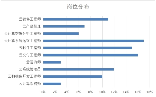 云計算技術技能型大專人才的分布在設計研發(fā)等技術要求較強的崗位比例偏低,以技術服務、基礎實施維護型技術崗位及銷售工程師崗位為主;在基礎硬件綜合服務型崗位,應用研發(fā)綜合服務企業(yè)以及云計算服務提供商對人才設置比較豐富,人才需求基數(shù)普遍較大;而在集成服務企業(yè)和云計算服務崗位,雖然企業(yè)規(guī)模偏小,需求較少,但是企業(yè)數(shù)量規(guī)模比例較大,主要以銷售工程師、交付工程師、運維工程師、系統(tǒng)管理員為主,崗位技能要求相對偏低,是大專人才比較聚集的地方。