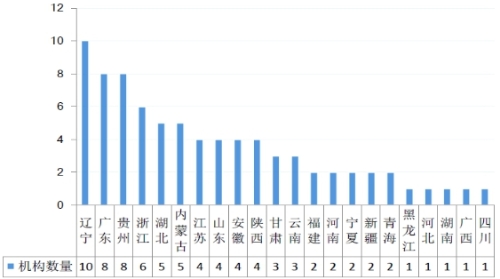 圖1 各省大數(shù)據(jù)管理機構(gòu)設(shè)置數(shù)量(單位:個)