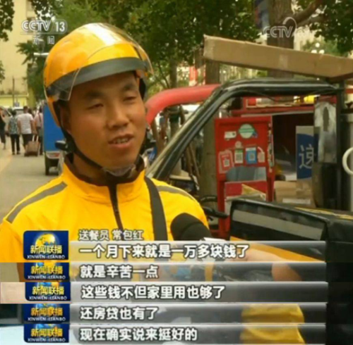 常包紅經(jīng)過勤奮工作,2019年成為所在站點(diǎn)的“單王”,月收入超過一萬元。常包紅在接受央視《新聞聯(lián)播》采訪時(shí)說,“靠著送外賣,我不僅養(yǎng)活了父母妻兒,還能還上老家的欠款,現(xiàn)在確實(shí)挺好的”。