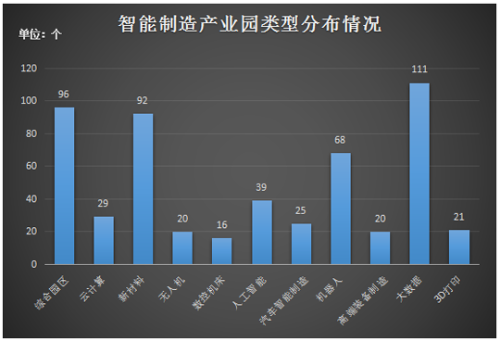 在智能制造的產(chǎn)業(yè)鏈上,云計算、大數(shù)據(jù)和人工智能技術(shù)的發(fā)展成為智能制造業(yè)發(fā)展的底層驅(qū)動力,是智能制造系統(tǒng)具備“數(shù)據(jù)采集、數(shù)據(jù)處理、數(shù)據(jù)分析”能力的基礎(chǔ)設(shè)施。近年來,大數(shù)據(jù)產(chǎn)業(yè)園也是數(shù)量最多的產(chǎn)業(yè)園類別,達到111個。其次是綜合園區(qū),達到96個。新材料園區(qū)為智能制造產(chǎn)業(yè)發(fā)展提供了“物質(zhì)引擎”,應(yīng)用非常廣泛,產(chǎn)業(yè)園區(qū)達到92個。
