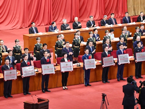 李克強(qiáng)主持大會,栗戰(zhàn)書宣讀主席令,王滬寧宣讀表彰決定,汪洋、趙樂際、韓正、王岐山出席。