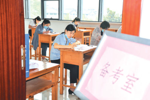 江蘇省徐州市人社系統(tǒng)舉行技能練兵比武決賽,來自全市系統(tǒng)12支代表隊(duì)的48名選手同臺(tái)競(jìng)技,經(jīng)過激烈角逐,決勝出前5名個(gè)人選手和前3名代表隊(duì)。圖為參賽選手在備考室為決賽做準(zhǔn)備。