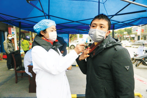 疫情期間,四川省合江縣為保障廣大外出農(nóng)民工安全返崗,縣人社局積極會(huì)同衛(wèi)健、交通和各鎮(zhèn)(街道)等相關(guān)單位,幫助農(nóng)民工辦好健康申報(bào)證明,安全返崗。圖為該縣基層衛(wèi)生健康服務(wù)點(diǎn)為返鄉(xiāng)農(nóng)民工測(cè)量體溫,辦理健康證明。