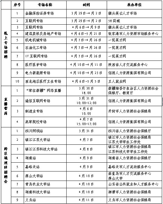 線上活動(dòng)14場:舉辦互聯(lián)網(wǎng)、機(jī)電機(jī)械、石油化工、醫(yī)療醫(yī)護(hù)、京津冀等10場專場招聘會和4場直播帶崗。截至3月26日,已有1286家用人單位提供約1.2萬個(gè)崗位,后期將有更多用人單位陸續(xù)加入。
