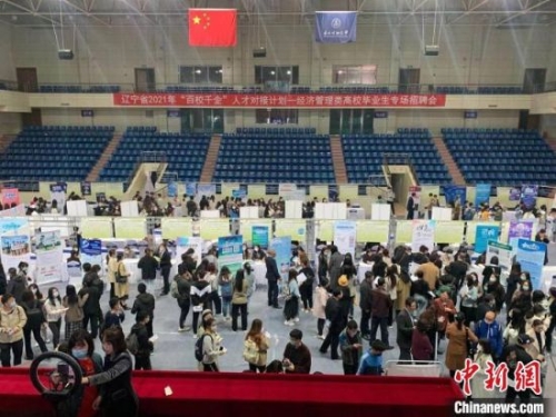 中新網(wǎng)沈陽4月8日電 (李晛)4月8日上午,由遼寧省委組織部、省人社廳共同舉辦的2021年“百校千企”人才對接計劃——經(jīng)濟管理類高校畢業(yè)生專場招聘會在東北財經(jīng)大學舉辦,現(xiàn)場吸引近2000名高校畢業(yè)生到場求職。