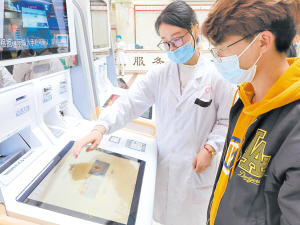 如何辦理就診卡?竇鎖艷介紹,患者只需攜帶身份證或醫(yī)保卡直接到自助機(jī)上辦理,老年人、兒童以及未攜帶身份證的患者可到人工收費(fèi)窗口及建檔點(diǎn)辦理。初次到云南省中醫(yī)醫(yī)院光華院區(qū)就診的患者,可通過微信公眾號(hào)“云南省中醫(yī)醫(yī)院患者服務(wù)平臺(tái)”或“滇醫(yī)通”微信公眾號(hào)線上建立個(gè)人健康檔案,憑身份證或醫(yī)保卡在自助機(jī)上取實(shí)體卡,或者是領(lǐng)取云南省居民電子健康卡。在微信公眾號(hào)或自助機(jī)預(yù)約掛號(hào)后,按預(yù)約時(shí)間提前15分鐘到醫(yī)院自助機(jī)簽到,簽到后按照回執(zhí)信息,到相應(yīng)診室就診。(張曉莉)