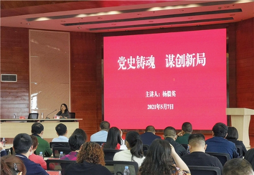 會議期間,楊毅英帶隊前往成都國際鐵路港開展“黨史鑄魂·謀創(chuàng)新局”黨史學習教育,現(xiàn)場觀摩學習,看發(fā)展、謀新篇。隨后,楊毅英以中國共產(chǎn)黨100年簡史為主題,結(jié)合工傷保險工作給與會同志上了一堂生動的黨課。楊毅英指出,中國共產(chǎn)黨的100年,是波瀾壯闊的100年,是不斷走向強盛、走向輝煌的100年。工傷保險戰(zhàn)線干部職工要感悟黨的百年光輝歷程,凝聚團結(jié)奮進的力量,不忘初心、堅定信念,矢志不渝、接續(xù)奮斗,用心用情用力把工傷保險事業(yè)不斷推向新的高峰。