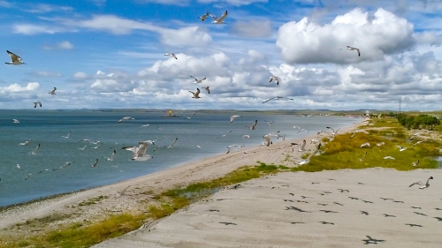 這是2019年8月28日拍攝的呼倫湖畔的水鳥(無人機照片)。新華社記者 沈伯韓 攝