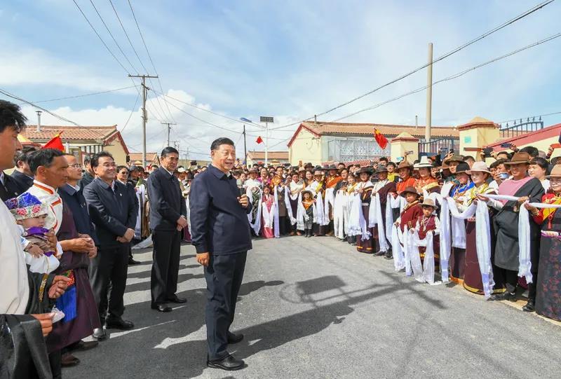 離開索南才讓家,村民們看到總書記來了,熱情地涌到路邊,歡呼著向總書記問好。習(xí)近平動(dòng)情地說,看到鄉(xiāng)親們過上幸福生活,我感到很欣慰。我們要繼續(xù)奮斗,到新中國(guó)成立一百周年時(shí)中華民族一定能夠更加堅(jiān)強(qiáng)地屹立于世界民族之林。全面建設(shè)社會(huì)主義現(xiàn)代化國(guó)家,一個(gè)民族也不能少。在中華民族大家庭中,大家只有像石榴籽一樣緊緊抱在一起,手足相親、守望相助,才能實(shí)現(xiàn)民族復(fù)興的偉大夢(mèng)想,民族團(tuán)結(jié)進(jìn)步之花才能長(zhǎng)盛不衰。習(xí)近平祝福大家“扎西德勒”。