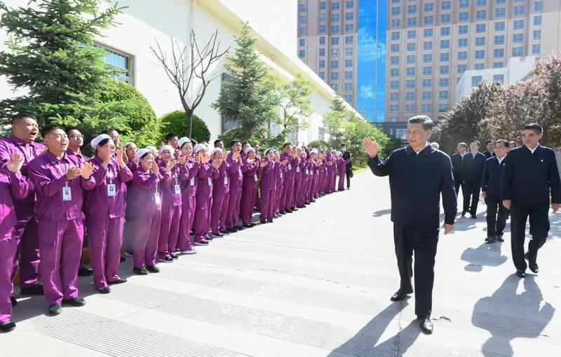 6月7日至9日,中共中央總書記、國(guó)家主席、中央軍委主席習(xí)近平在青海考察。這是7日下午,習(xí)近平在青海圣源地毯集團(tuán)有限公司考察時(shí),向企業(yè)職工揮手致意。新華社記者 李學(xué)仁 攝