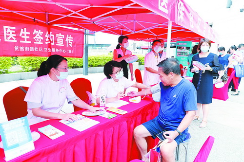 昨日,共建單位在簽約現(xiàn)場為居民提供了豐富的義診服務(wù)。(陳理杰 攝)