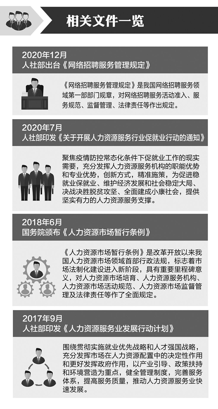 一是進(jìn)一步完善配套法律法規(guī)和政策體系。在現(xiàn)行人力資源市場(chǎng)相關(guān)法規(guī)制度架構(gòu)的基礎(chǔ)上,不斷優(yōu)化完善,加強(qiáng)針對(duì)人力資源服務(wù)機(jī)構(gòu)、第三方勞務(wù)派遣、新就業(yè)形態(tài)、就業(yè)歧視、終身職業(yè)培訓(xùn)等方面的專項(xiàng)法規(guī)制度建設(shè),為產(chǎn)業(yè)規(guī)范健康發(fā)展提供良好制度保障。