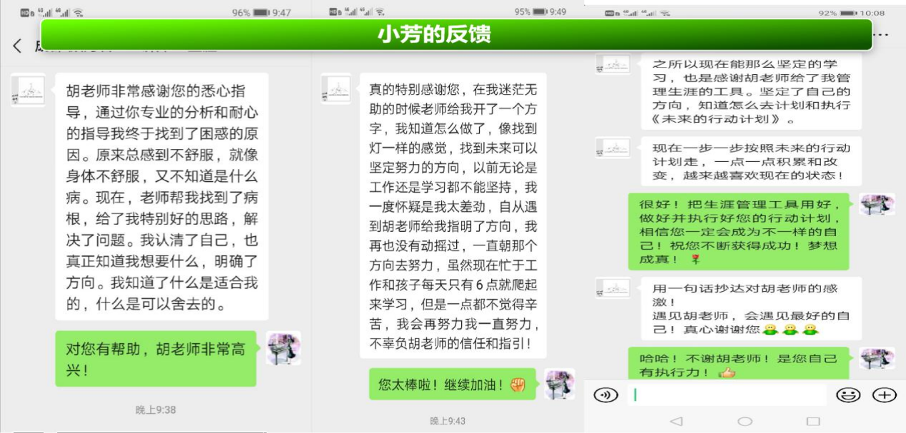 咨詢結(jié)束后,從來訪者反饋看效果(見下圖:小芳的反饋)。