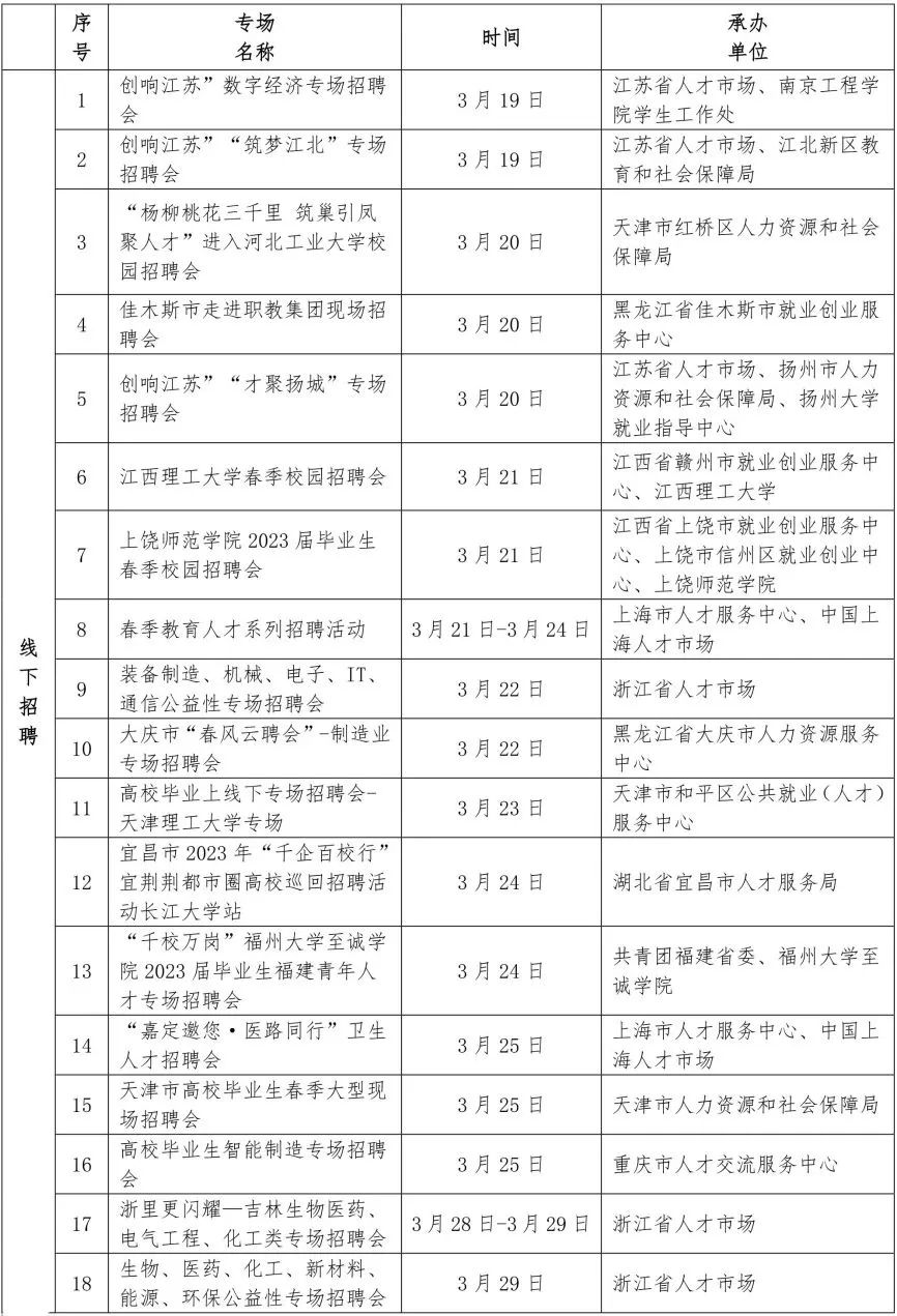 為深入貫徹黨的二十大精神,落實(shí)黨中央、國務(wù)院關(guān)于高校畢業(yè)生就業(yè)工作的決策部署,促進(jìn)高校畢業(yè)生高質(zhì)量充分就業(yè),人社部于3月19日至5月26日開展職引未來—2023年大中城市聯(lián)合招聘高校畢業(yè)生春季專場活動。