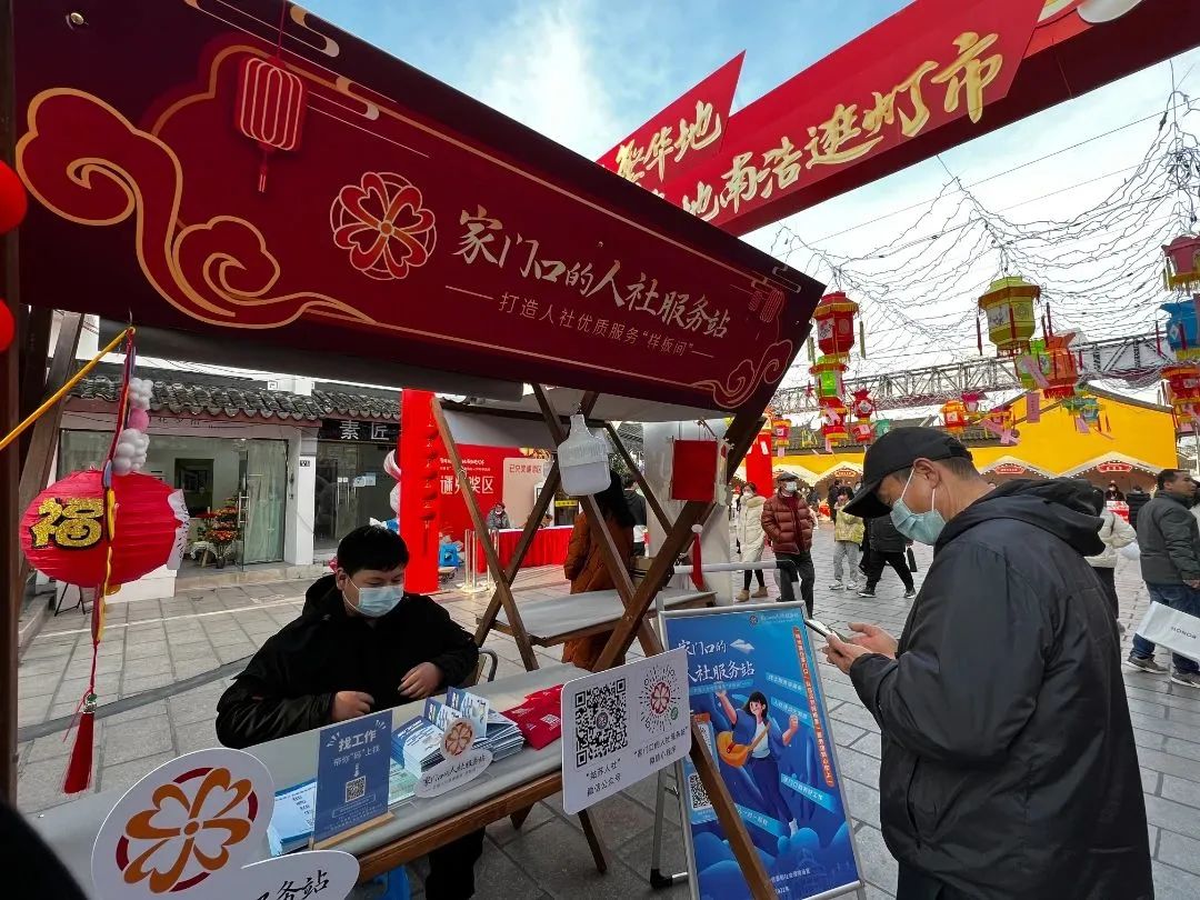2月5日,在金閶街道舉辦的元宵燈市上,“家門口的人社服務(wù)站”主題攤位推出了定制特色花燈、宣傳海報、宣傳折頁、小禮品等,不時有市民駐足圍觀,咨詢就業(yè)等問題。