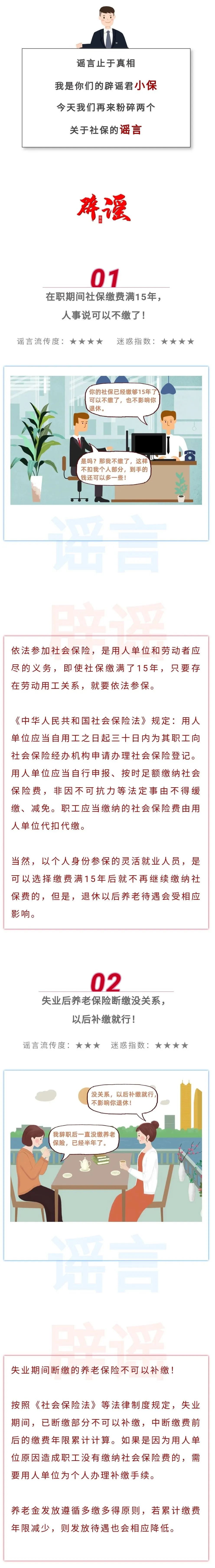 “社保繳費(fèi)滿15年,人事說可以不繳了!”、“辭職后養(yǎng)老保險(xiǎn)斷繳沒關(guān)系,以后補(bǔ)繳就行!”別被這些謠言忽悠了