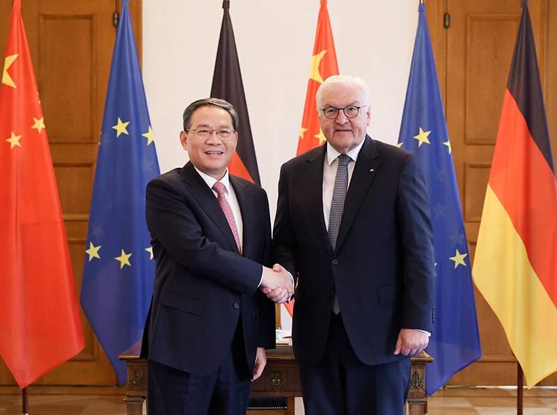 李強(qiáng)首先轉(zhuǎn)達(dá)習(xí)近平主席對(duì)施泰因邁爾總統(tǒng)的親切問候。李強(qiáng)表示,去年是中德建交50周年,習(xí)近平主席同總統(tǒng)先生互致賀電并通電話,為雙邊關(guān)系健康穩(wěn)定發(fā)展提供戰(zhàn)略引領(lǐng)。中國始終高度重視中德關(guān)系。我此次訪德并同朔爾茨總理共同主持第七輪中德政府磋商,就是為了落實(shí)兩國元首共識(shí),持續(xù)增信釋疑,挖掘雙邊合作新機(jī)遇,充實(shí)中德全方位戰(zhàn)略伙伴關(guān)系內(nèi)涵,助力兩國發(fā)展和全球經(jīng)濟(jì)復(fù)蘇。
