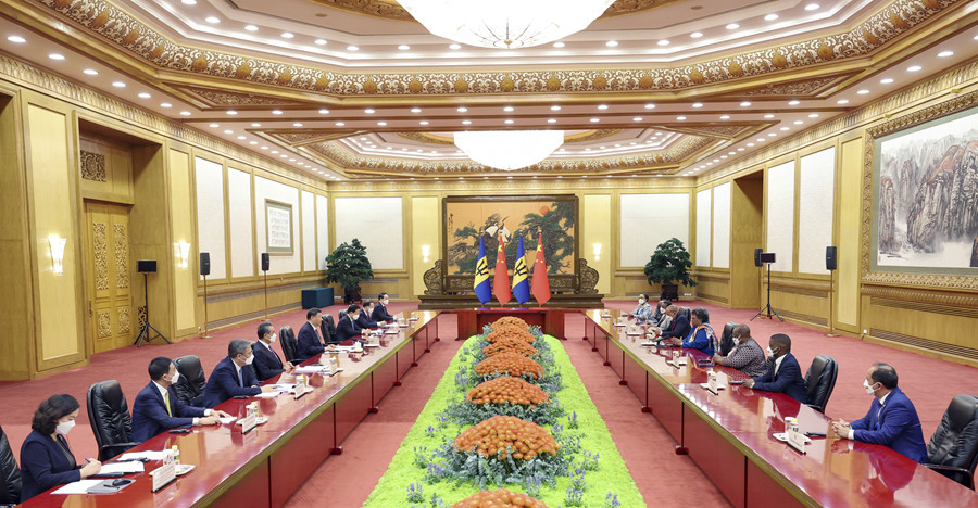 習(xí)近平指出,面對(duì)世界百年未有之大變局,廣大發(fā)展中國家要加強(qiáng)團(tuán)結(jié)合作,踐行真正的多邊主義,反對(duì)冷戰(zhàn)思維和陣營對(duì)抗,維護(hù)國際關(guān)系基本準(zhǔn)則,維護(hù)國際公平正義,推動(dòng)構(gòu)建人類命運(yùn)共同體。中方充分理解巴巴多斯等小島嶼發(fā)展中國家在氣候變化領(lǐng)域的訴求,愿繼續(xù)加強(qiáng)應(yīng)對(duì)氣候變化南南合作,為包括巴巴多斯在內(nèi)的發(fā)展中國家提供幫助和支持。中方從戰(zhàn)略高度和長遠(yuǎn)角度重視同加勒比關(guān)系,將繼續(xù)為加方經(jīng)濟(jì)社會(huì)發(fā)展提供力所能及幫助。