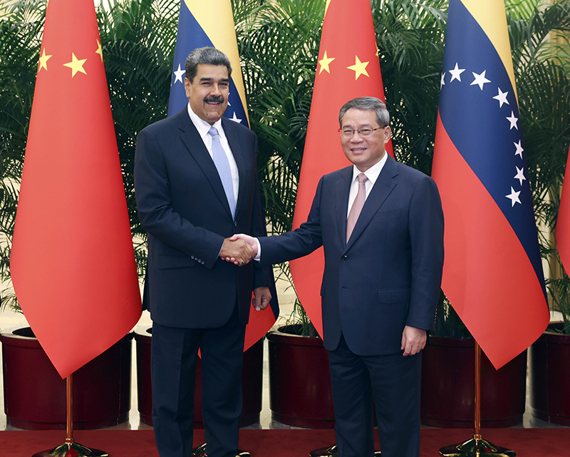 9月14日上午,國務(wù)院總理李強在北京人民大會堂會見來華進行國事訪問的委內(nèi)瑞拉總統(tǒng)馬杜羅。新華社記者 劉衛(wèi)兵 攝