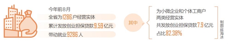 “造血式”的創(chuàng)業(yè)擔(dān)保貸款,產(chǎn)生了以點(diǎn)帶面的惠民效應(yīng)。據(jù)統(tǒng)計(jì),今年前8月全省為1286戶經(jīng)營(yíng)實(shí)體累計(jì)發(fā)放創(chuàng)業(yè)擔(dān)保貸款9.59億元,帶動(dòng)就業(yè)9286人。這些就業(yè)人員大部分是當(dāng)?shù)貏趧?dòng)力,他們?cè)凇凹议T口”就能夠“好就業(yè)、就好業(yè)”。