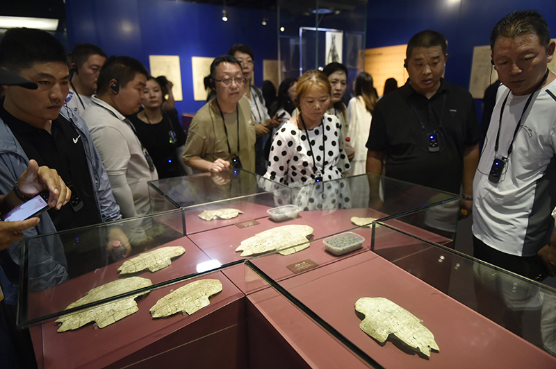 2023年8月10日,觀眾在河南省安陽(yáng)市的殷墟博物館參觀。新華社記者 魯鵬 攝
