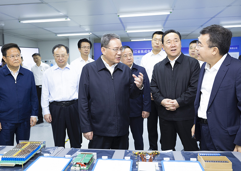 在廣立微電子股份有限公司,李強聽取浙江集成電路產(chǎn)業(yè)發(fā)展情況匯報,了解公司技術研發(fā)情況。李強強調,要堅持科技自立自強,推進集成電路全產(chǎn)業(yè)鏈發(fā)展,加強協(xié)同攻關,提高自主可控水平。