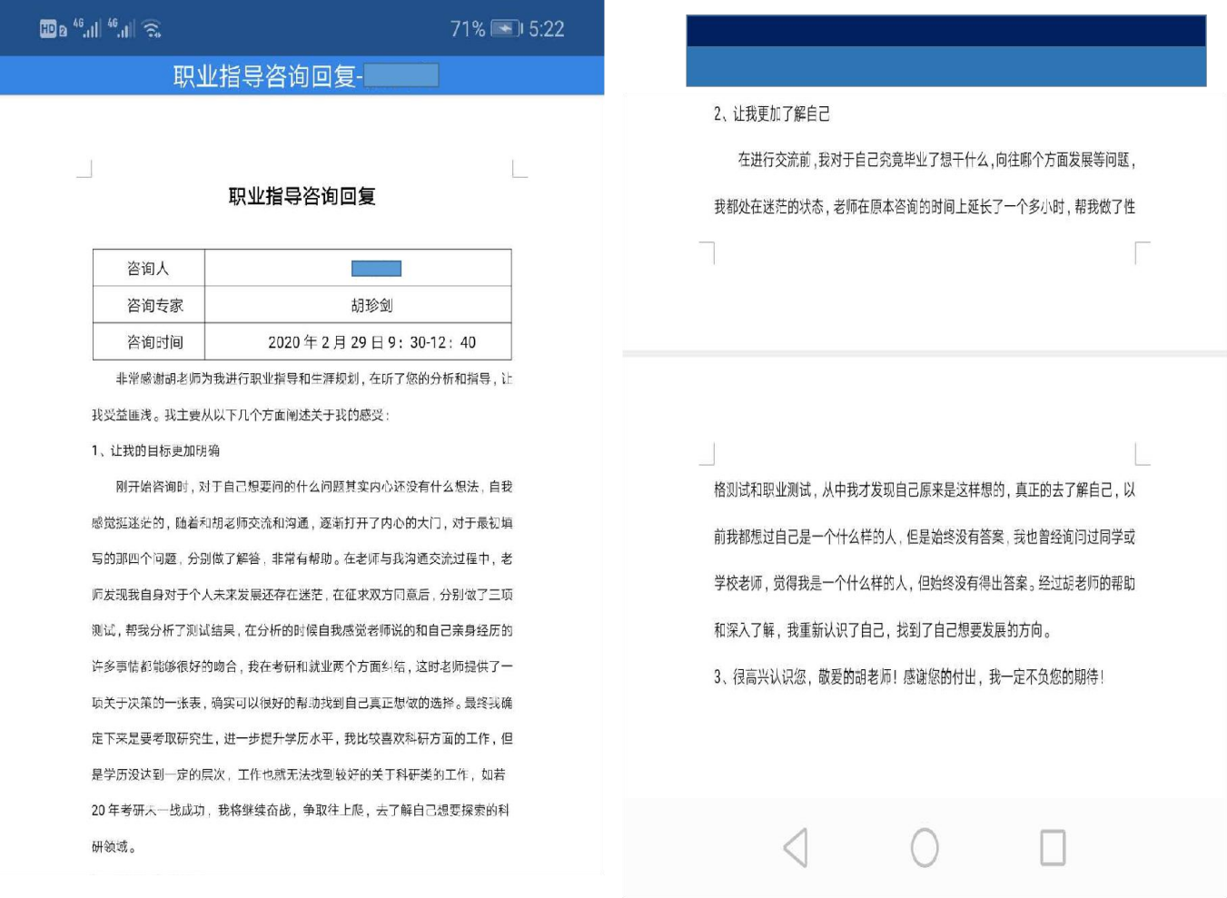 二、 實際效果(見下圖:職業(yè)指導(dǎo)咨詢回復(fù))