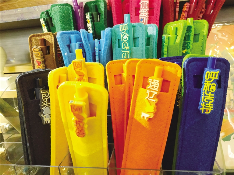 店鋪內(nèi)木制的格子架上擺放著各式各樣的呼和浩特文創(chuàng)產(chǎn)品,顧客可以一邊品嘗咖啡,一邊挑選自己喜歡的呼和浩特文創(chuàng)產(chǎn)品,印有呼和浩特旅游景點(diǎn)的冰箱貼、筆記本、明信片、文件夾等深受大家喜愛(ài)。楊蒙說(shuō):“有的外地游客來(lái)咖啡店因?yàn)橼s時(shí)間沒(méi)買上咖啡,我就會(huì)免費(fèi)送一些文創(chuàng)產(chǎn)品,讓更多人了解呼和浩特文化。”