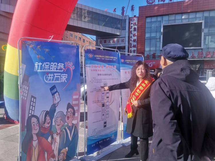 霍林郭勒市社保中心在鴻宇廣場開展宣傳,給老人講解生存認證操作流程。