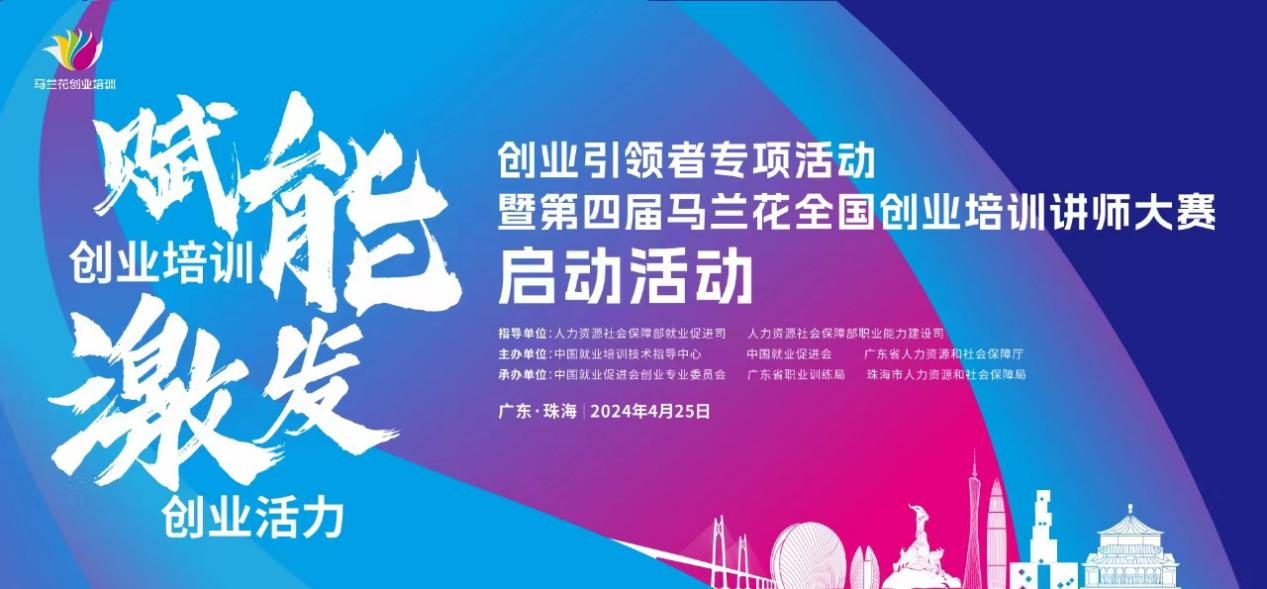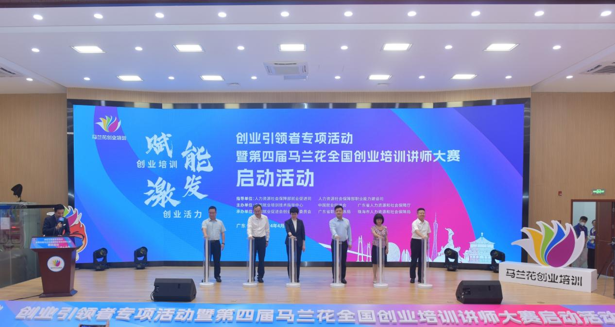 4月25日,創(chuàng)業(yè)引領(lǐng)者專項活動暨第四屆馬蘭花全國創(chuàng)業(yè)培訓講師大賽啟動活動在廣東珠海順利舉行,現(xiàn)場點亮馬蘭花,正式拉開大賽帷幕。大賽組委會成員單位有關(guān)負責同志、廣東省創(chuàng)業(yè)培訓主管部門同志、創(chuàng)業(yè)培訓機構(gòu)及創(chuàng)業(yè)培訓師資代表等現(xiàn)場見證專項活動啟動時刻。同時全國各省、自治區(qū)、直轄市及新疆生產(chǎn)建設(shè)兵團人力資源社會保障廳(局)創(chuàng)業(yè)培訓主管部門主要負責同志、有關(guān)工作同志在線觀看參與啟動活動。